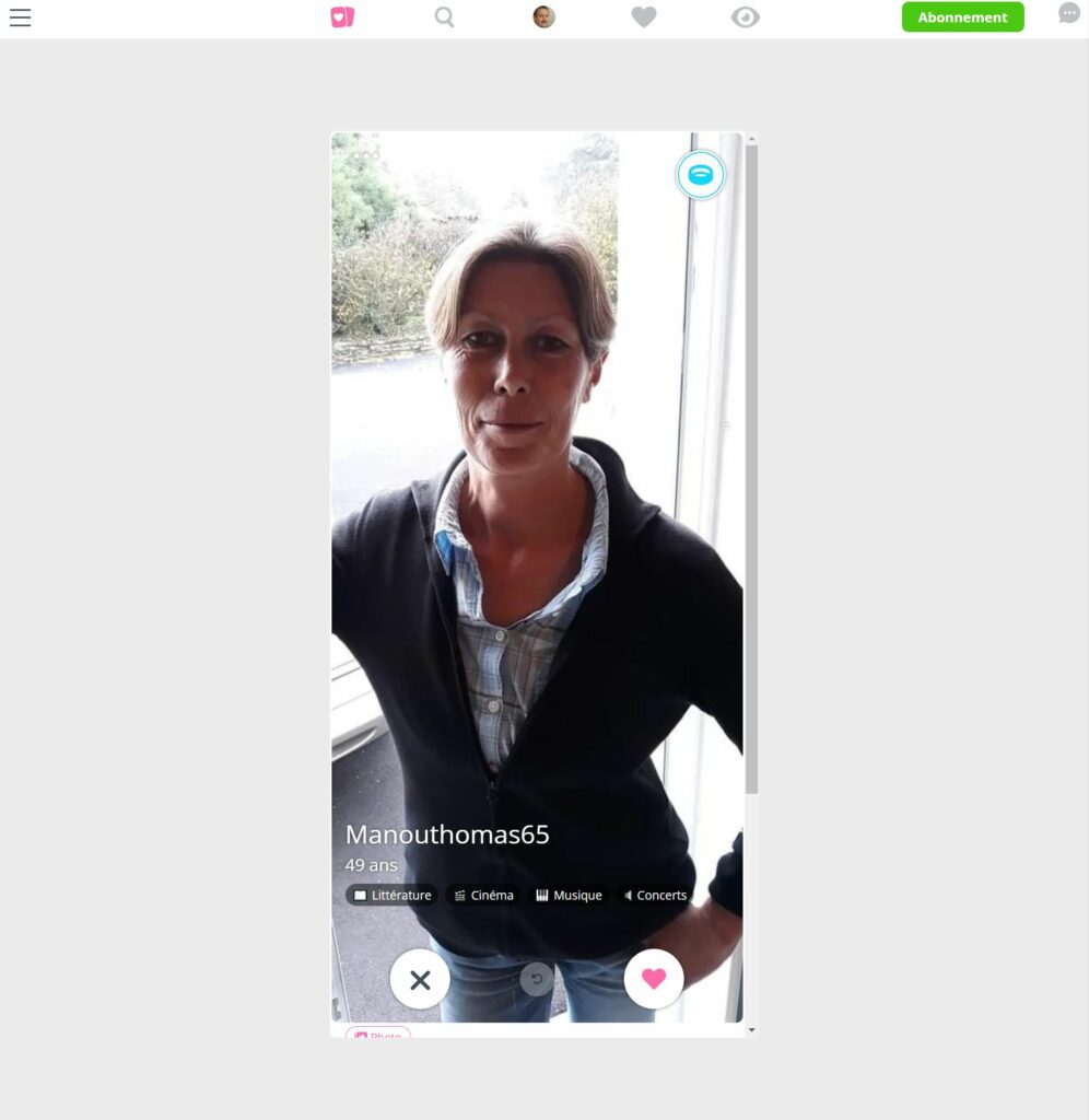 En suite, de la même manière que d’autres plateformes de rencontres, Senior Club Rencontre vous propose une fonctionnalité de Swipe. C’est-à-dire qu’il vous proposera des célibataires à proximité et, sur base de la photo et de quelques informations de loisirs, vous pourrez dire si le membre vous intéresse ou non en cliquant sur la croix ou sur le coeur.